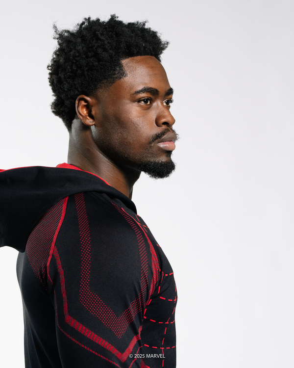 Introducing the official Spider-Man: Miles Morales Collection in collaboration with Marvel. Built for the city, the gym, and beyond — pairing iconic details inspired by Spider-Man’s suit with high performance materials.